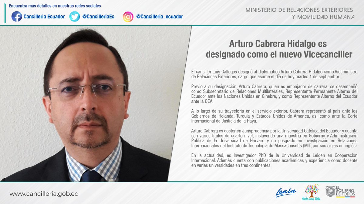 Cancilleria Del Ecuador Auf Twitter Diplomaciaactiva Arturo Cabrera Hidalgo Arturocabreraec Diplomatico Con Destacada Trayectoria En El Servicio Exterior Se Desempenara Como Viceministro De Relaciones Exteriores Desde El 1 De Septiembre De